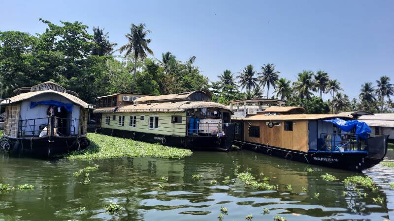 De typische Houseboats in de backwaters zijn oorspronkelijk graan- en rijst-schuiten, waarmee het etenswaar vanaf de vruchtbare akkers tussen al dat water naar handelsposten vervoerd werd. Tegenwoordig worden de boten vooral verhuurd aan groepen toeristen voor een rondvaart en een overnachting op het water. En dat is dus precies wat wij ook doen.