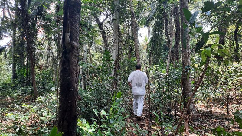 In de 18e eeuw, werd Kozhikode aangevallen door Mysore, onder leiding van Hyder Ali. Zijn zoon Tipu -daar heb je hem weer- heeft bij een bezoek aan de regio een plaats aangewezen om een fort te bouwen. Op/in een heuvel langs de Chaliyar rivier zijn de restanten terug te vinden van de marinebasis van Tipu Sultan. Langzamerhand begint die man een obsessie te worden, dus we moesten wel op zoek naar de ruïnes. Bovenop de restanten van het fort is zo'n 150 jaar geleden een bungalow gebouwd. Het gebied is inmiddels wel veiliggesteld door de archeologische dienst, maar ze zijn nog niet echt toegekomen aan het uitgraven van de restanten. Wij hebben alleen een stukje van een gang gezien, maar er schijnt ook nog een put met een wenteltrap te zijn gevonden. En meerdere gangen, munten en gebruiksvoorwerpen.